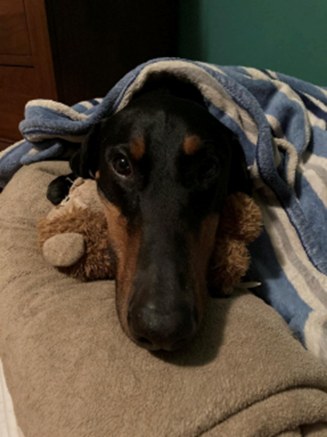 Ritter, our faithful therapy dog, relished all the pats and cuddles throughout the day. By the time we returned home, he was thoroughly exhausted and ready for a well-deserved rest. Skipping his usual after-dinner walk, Ritter went straight to bed, where I tucked him in with his favourite monkey and wished him a good night.