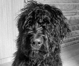 This is Bronwyn. She is a mix of Bernese Mountain Dog, Bouvier, and Standard Poodle.