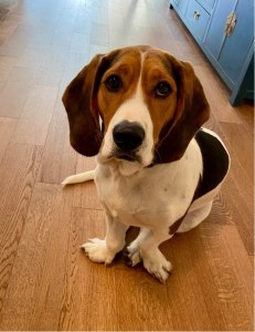 Cosmo is a Bassett hound mix. She likes pina coladas and getting caught in the rain.