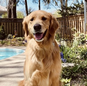 Molly is a happy-go-lucky Golden Retriever! She loves playing fetch with her toys, zoomies with her sister, Stella, and chewing her bone. Molly also loves meeting new friends – big and small!