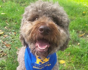 Pancho is a sweet fluff boy with human eyes. He is Lagotto Romagnolo who loves back scratches and belly rubs.