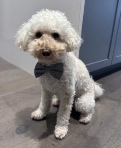 Rocky is a sweet and lovable mini poodle who fills every day with warmth and joy. He adores belly rubs, swimming, and cuddles, and is affectionately known as the little snuggly bear.