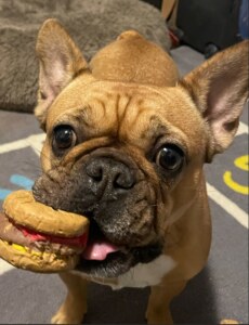 Thunder is a Frenchie. Don’t let her name fool you, she is a chill and classy girl and very quiet. She is famous for her tap dance moves when she gets excited.